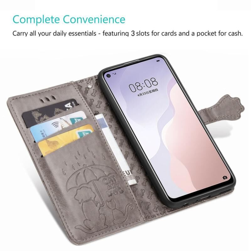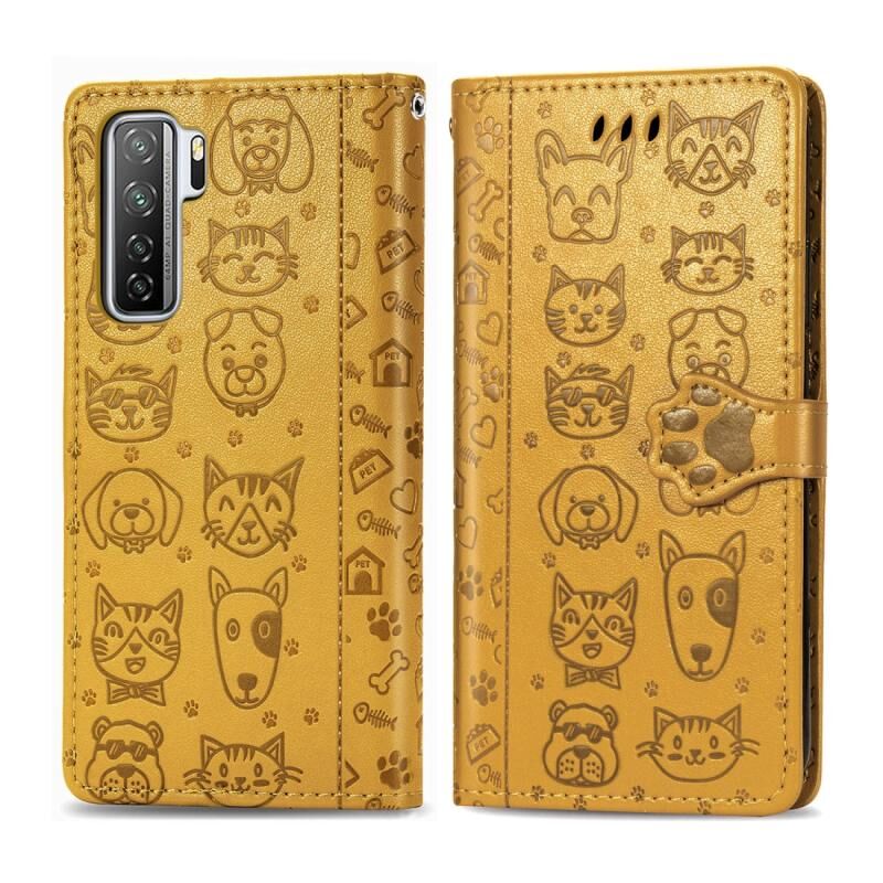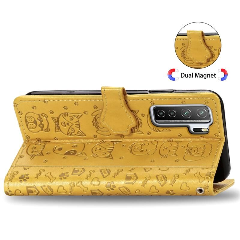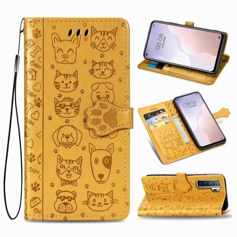 Για Huawei Nova 7SE/P40 Lite 5G Χαριτωμένη Θήκη Δέρματος Οριζόντιας Αναδίπλωσης με ανάγλυφα σχέδια Γάτας και Σκύλου με Στήριγμα / Θήκη Κάρτας / Πορτοφόλι / Λουρί (Κίτρινο)
