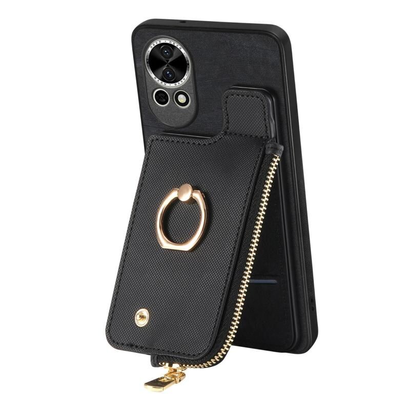 Θήκη Huawei nova 8 Δερμάτινη με Δαχτυλίδι & Φερμουάρ Πορτοφόλι (Μαύρο)