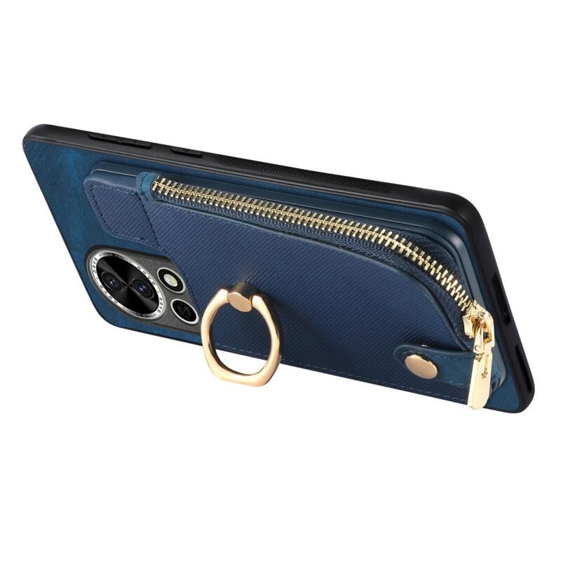 Θήκη Huawei nova 8 Δερμάτινη με Δαχτυλίδι & Φερμουάρ Πορτοφόλι (Μπλε)