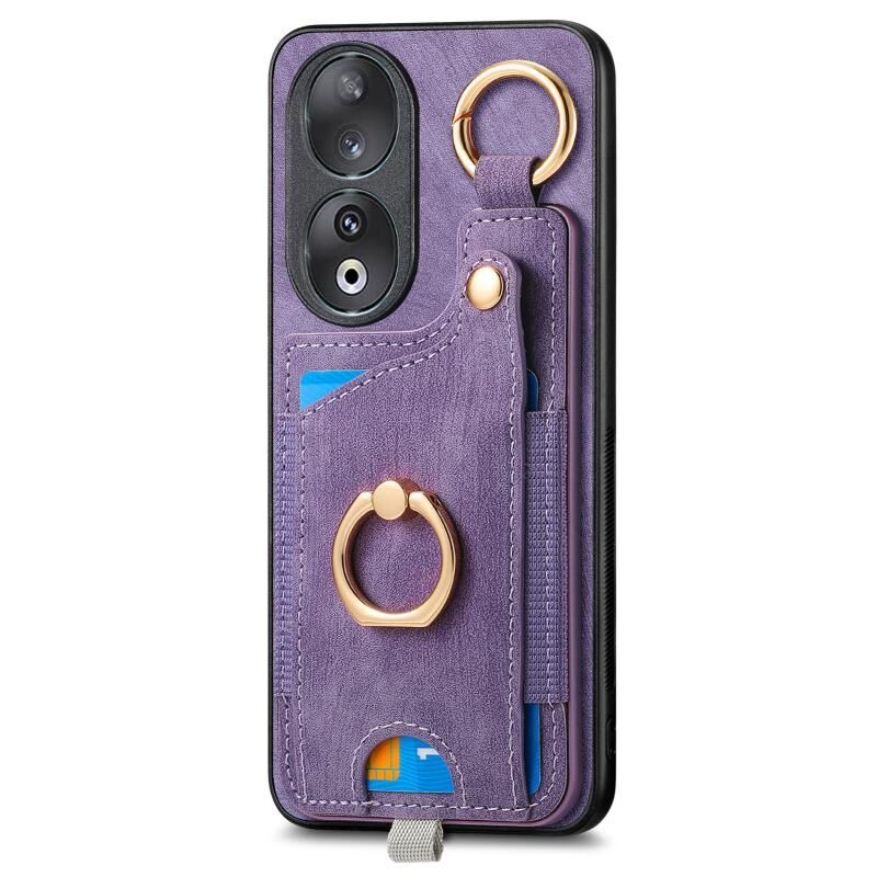 Για Huawei nova 8 Ρετρό δέρμα-feel Ring Card Bag υπόθεση τηλεφώνου με Hang Loop (μωβ)