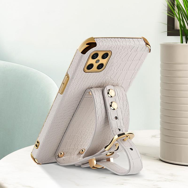 For Huawei Nova 8 SE Electroplated TPU Crocodile Pattern Leather Case with Wrist Strap(White)