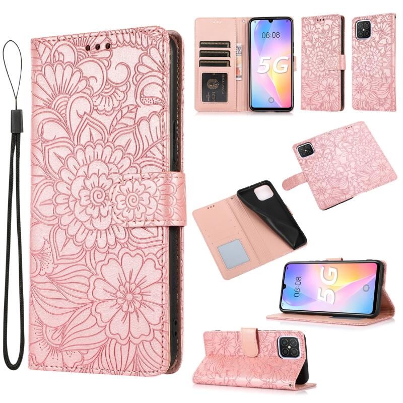 Για Huawei nova 8 SE δέρμα αίσθηση ανάγλυφο ηλιοτρόπιο οριζόντια Flip δερμάτινη θήκη με κάτοχο & υποδοχές καρτών & πορτοφόλι & Lanyard (Rose Gold)