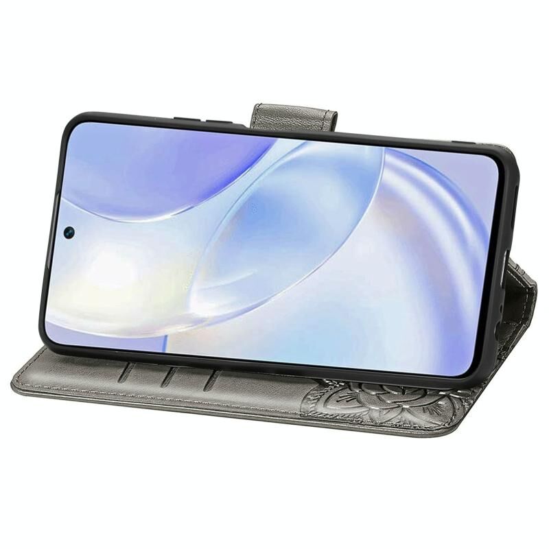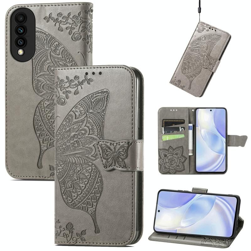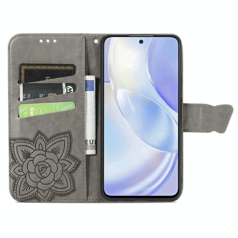 Θήκη Huawei nova 8 SE Youth Butterfly Love Flower ανάγλυφη οριζόντια δερμάτινη με βάση & υποδοχές καρτών & πορτοφόλι & λουρί (Μαύρο)