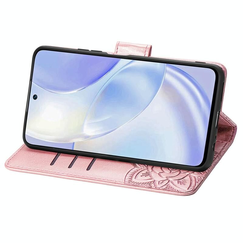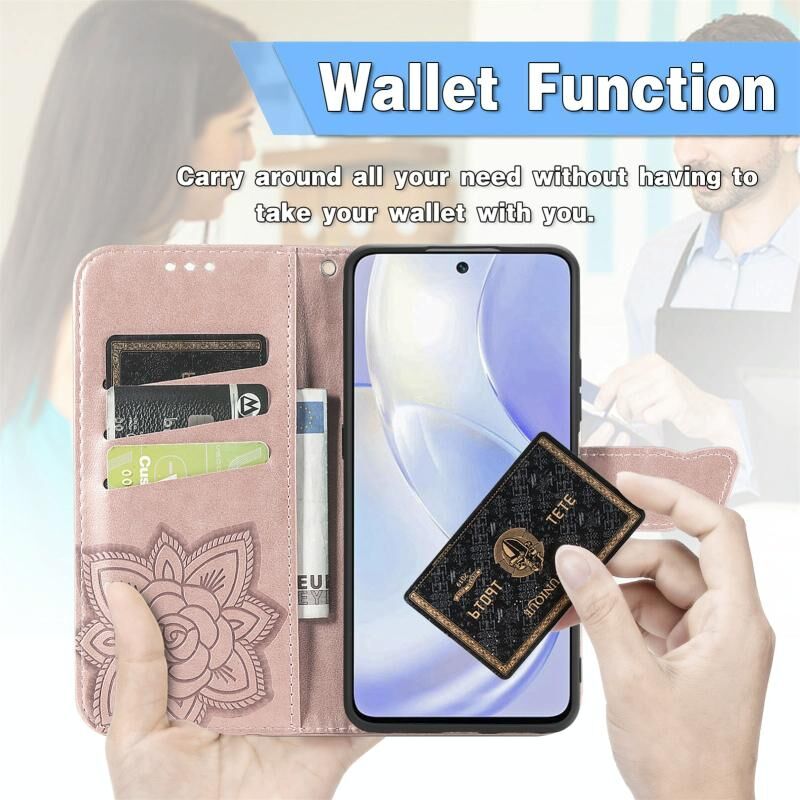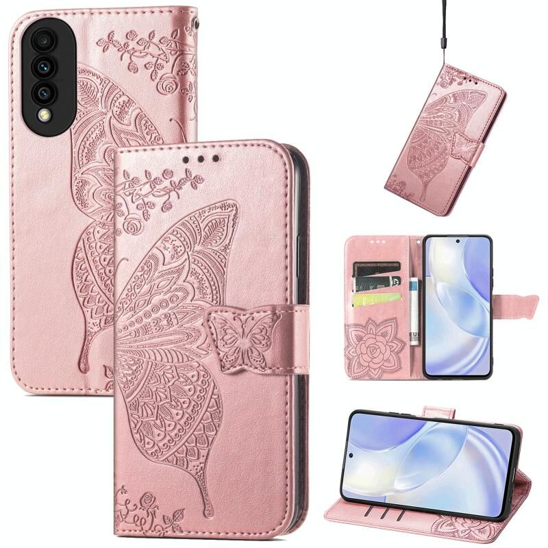 Θήκη Huawei nova 8 SE Youth Butterfly Love Flower ανάγλυφη οριζόντια δερμάτινη με βάση & υποδοχές καρτών & πορτοφόλι & λουρί (Μαύρο)