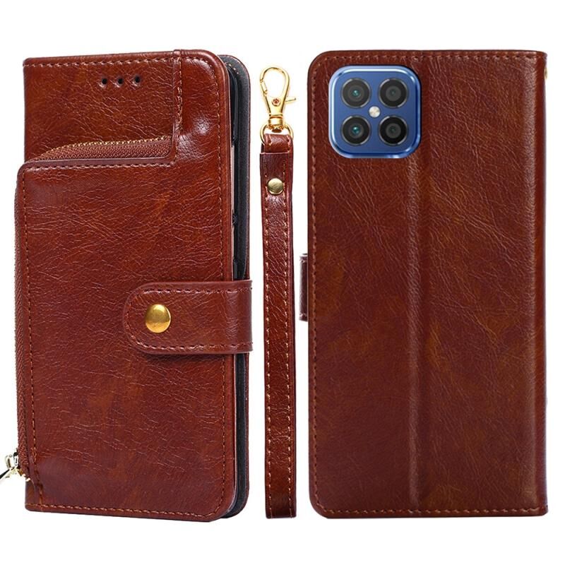 Θήκη Huawei nova 8 SE, Δερμάτινη οριζόντια θήκη με φερμουάρ, PU + TPU, με βάση, θήκη καρτών, πορτοφόλι & λουρί (Καφέ)