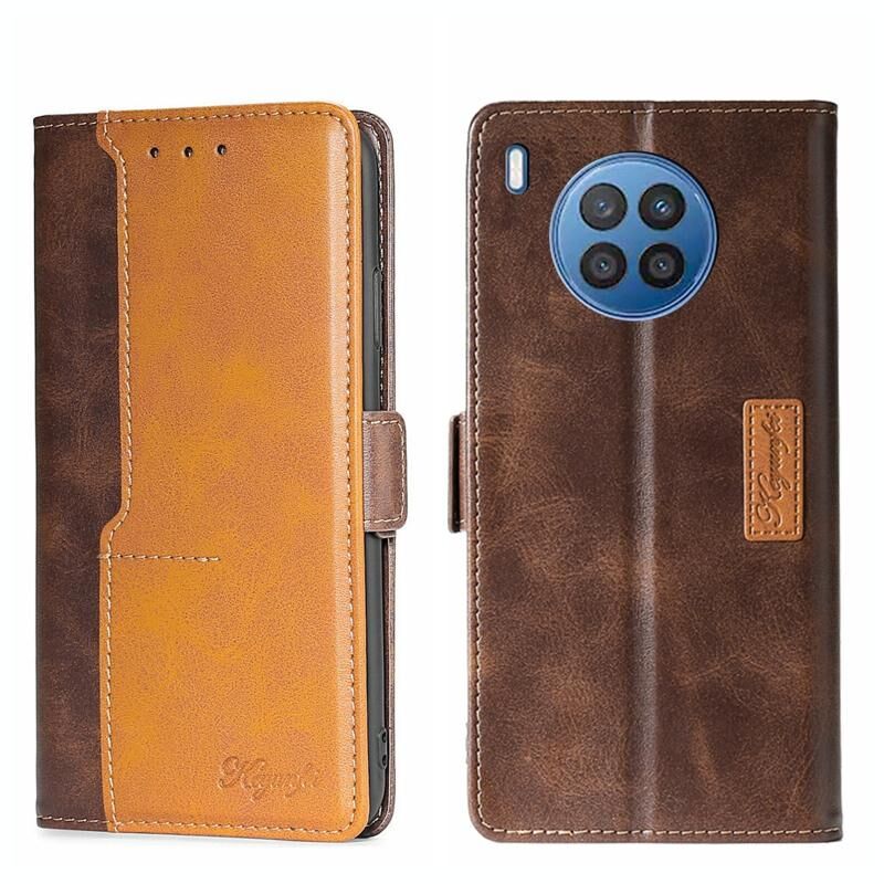 Για Huawei Nova 8i αντίθεση χρώμα πλευρά πόρπη δερμάτινη θήκη τηλεφώνου υπόθεση (Σκούρο καφέ και χρυσό)