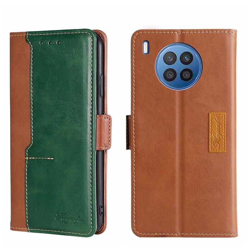 Για Huawei Nova 8i αντίθεση χρώμα πλευρά πόρπη δερμάτινη θήκη τηλεφώνου υπόθεση (ανοιχτό καφέ + πράσινο)