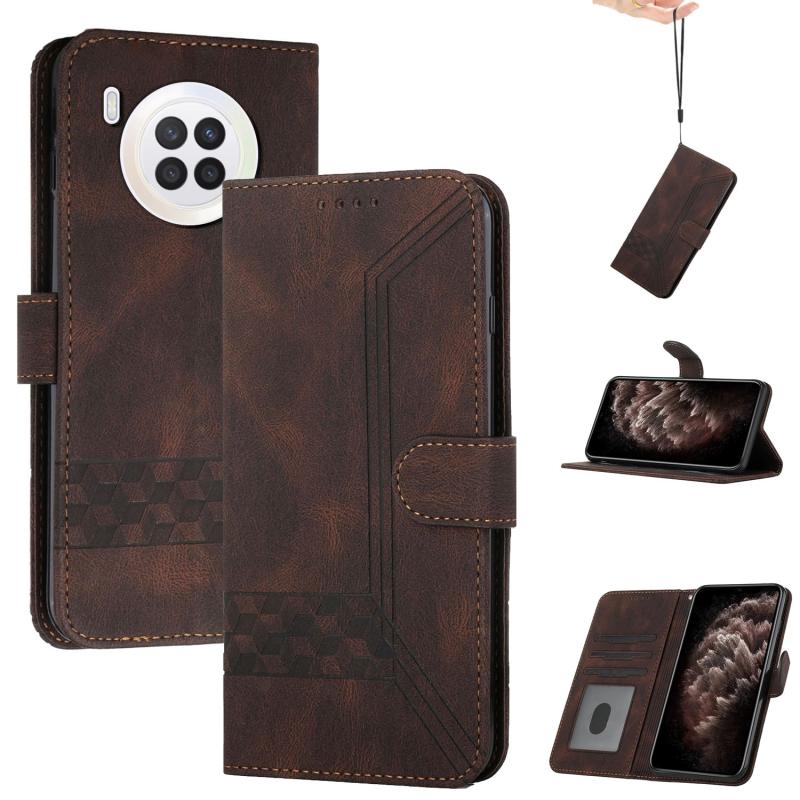 Θήκη τηλεφώνου Huawei nova 8i Cubic Skin Feel Flip από δέρμα (Σκούρο καφέ)
