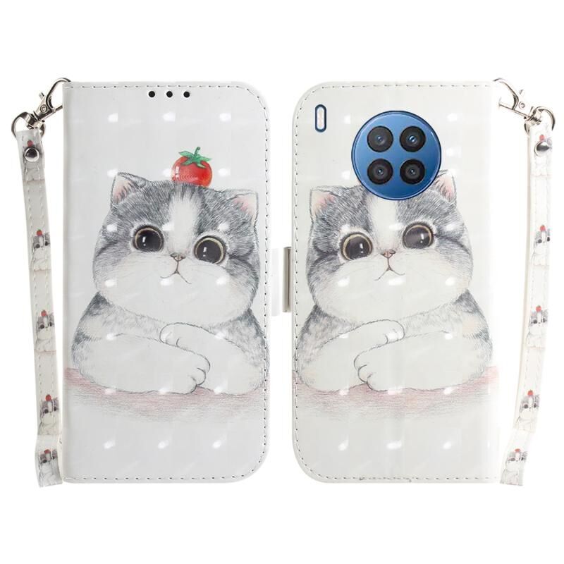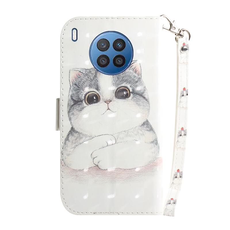 Θήκη τηλεφώνου δερμάτινη, οριζόντια, αναδιπλούμενη, 3D με χρώματα για Huawei nova 8i / Honor 50 (Χαριτωμένη Γάτα)
