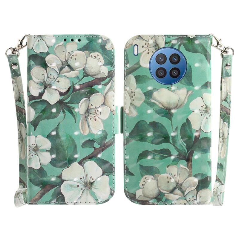 Θήκη τηλεφώνου δερμάτινη, οριζόντια, αναδιπλούμενη, με έγχρωμο 3D σχέδιο (υδάτινο λουλούδι) για Huawei nova 8i / Honor 50.