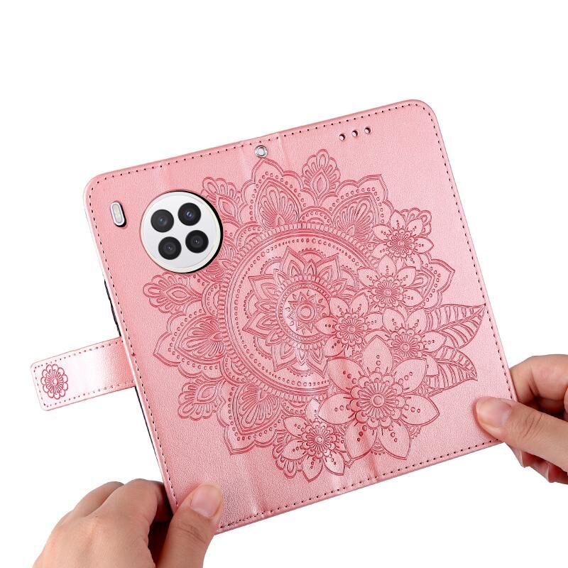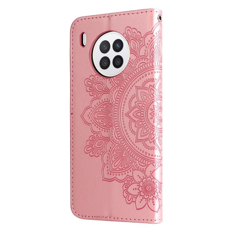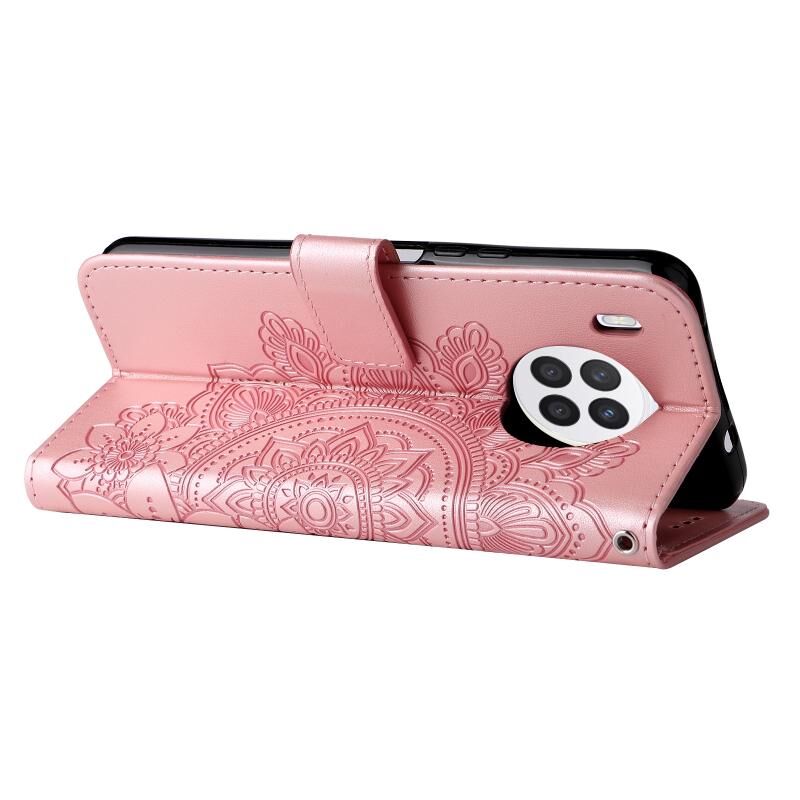 Για Huawei nova 8i / Honor 50 Lite 7-πέταλο λουλούδια ανάγλυφο Flip δερμάτινη θήκη τηλεφώνου με θήκη & υποδοχές καρτών (Ροζ χρυσός)