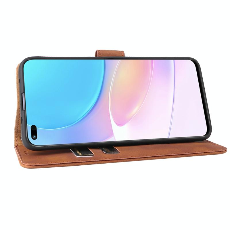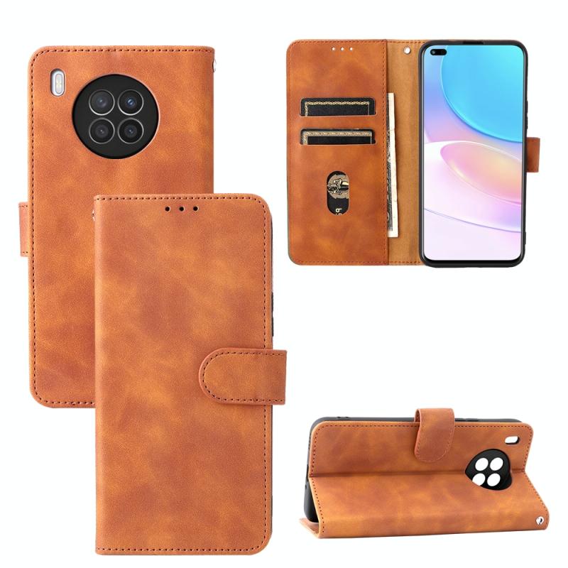 For Huawei nova 8i / Honor 50 Lite Skin Feel Magnetic Buckle Calf Texture PU Phone Case(Brown)