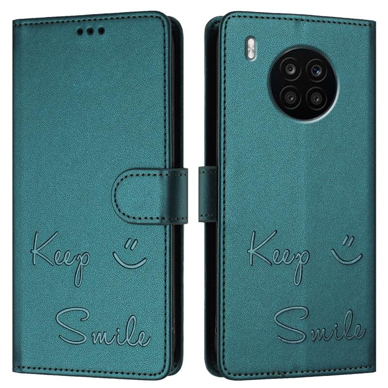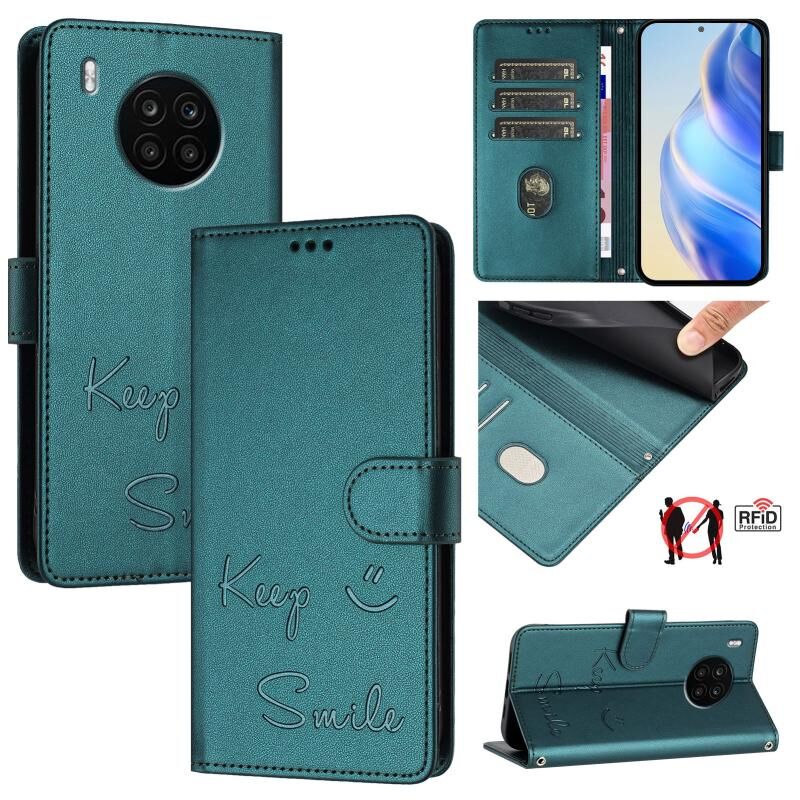 Για Huawei nova 8i Χαμόγελο ανάγλυφο RFID δερμάτινη θήκη τηλεφώνου (Peacock Green)
