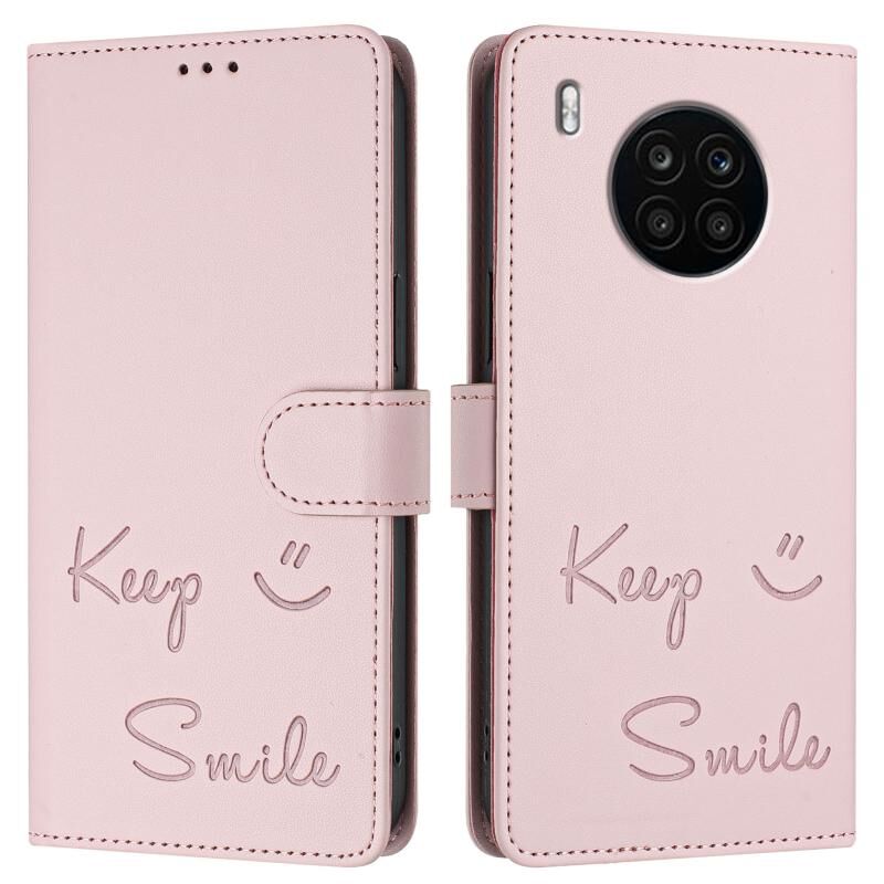 Για Huawei nova 8i Χαμόγελο ανάγλυφο RFID δερμάτινη θήκη τηλεφώνου (ροζ)