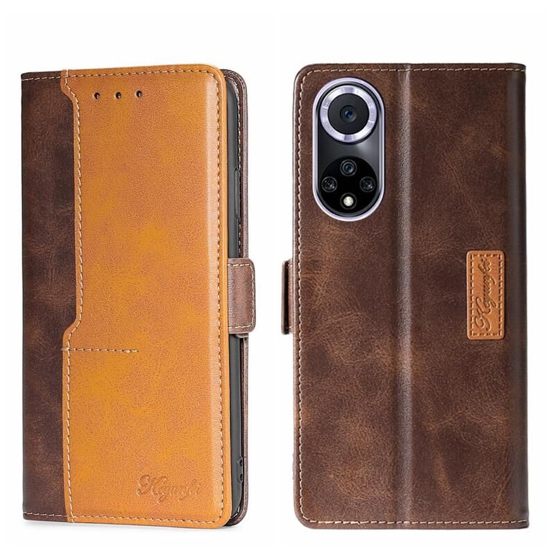 Για Huawei Nova 9 αντίθεση χρώμα πλευρά πόρπη δερμάτινη θήκη τηλεφώνου υπόθεση (σκούρο καφέ + χρυσό)