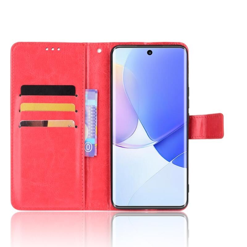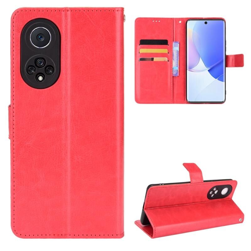 Για Huawei nova 9 Crazy Horse Υφή Οριζόντια Flip τηλέφωνο δερμάτινη θήκη με υποδοχή & υποδοχές καρτών & κορδόνι (κόκκινο)