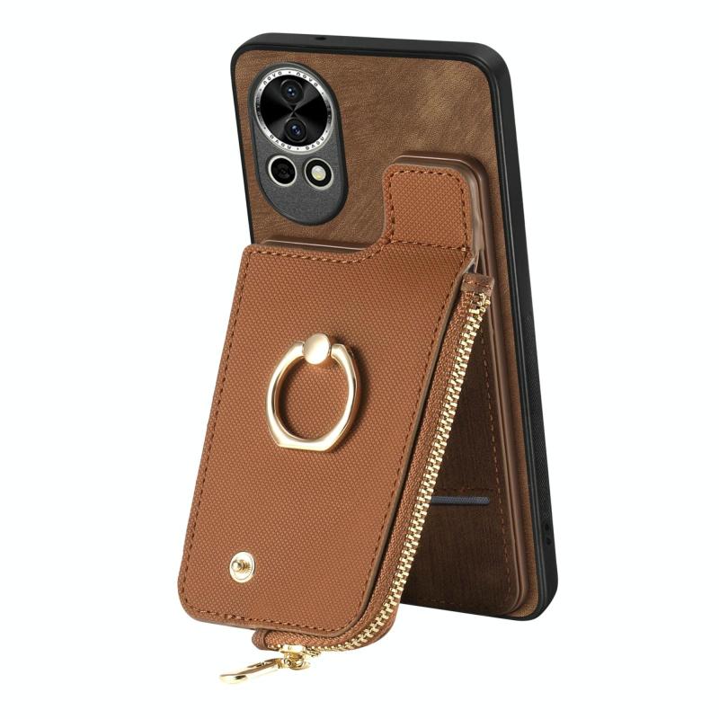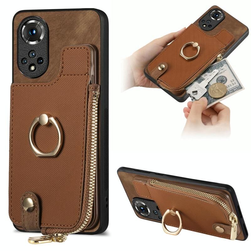 Θήκη Huawei nova 9 Δερμάτινη με Δαχτυλίδι & Φερμουάρ Πορτοφόλι (Καφέ)