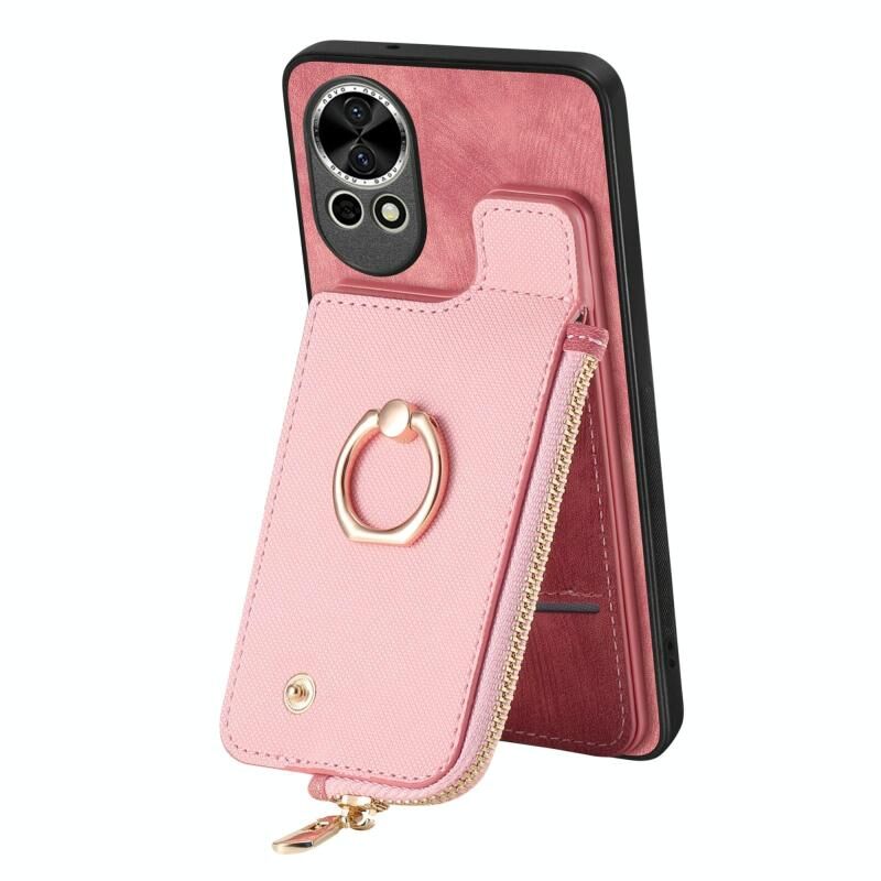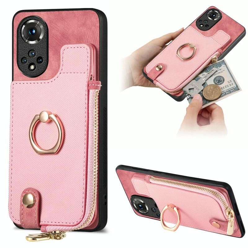 Θήκη Huawei nova 9 Δερμάτινη με Δαχτυλίδι & Φερμουάρ Πορτοφόλι (Ροζ)