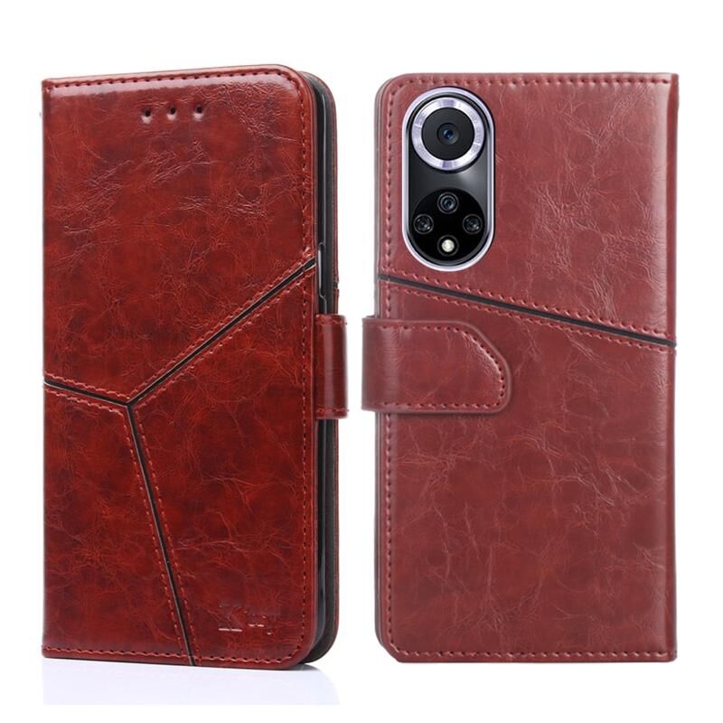 Για Huawei nova 9 γεωμετρική ραφή οριζόντια Flip υπόθεση τηλεφώνου δέρμα (σκούρο καφέ)