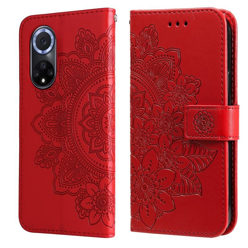 Για Huawei nova 9 / Honor 50 7-πέταλο λουλούδια ανάγλυφο Flip δερμάτινη θήκη τηλεφώνου με θήκη & υποδοχές καρτών (κόκκινο)