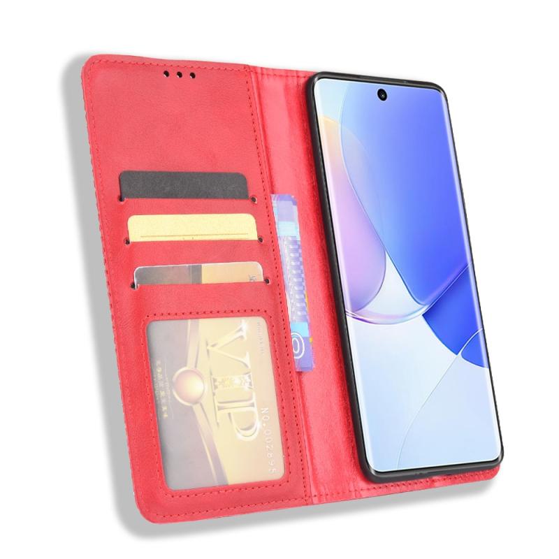 Θήκη τηλεφώνου Huawei nova 9 από δέρμα με μαγνητικό κούμπωμα, υφή Retro Crazy Horse, οριζόντια αναδιπλούμενη με βάση στήριξης & θήκες καρτών & κορνίζα φωτογραφιών (Κόκκινο)