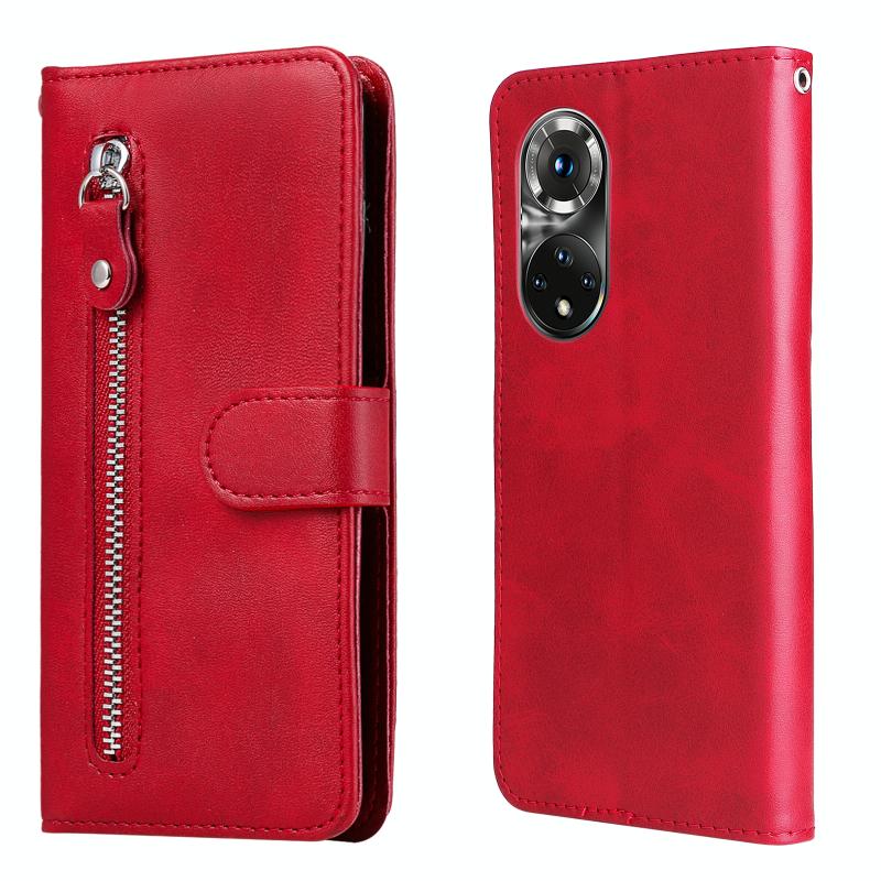 Θήκη δέρματος οριζόντιας αναδίπλωσης με φερμουάρ και υφή μοσχαριού για Huawei Nova 9 Pro/Honor 50 Pro (Καφέ)