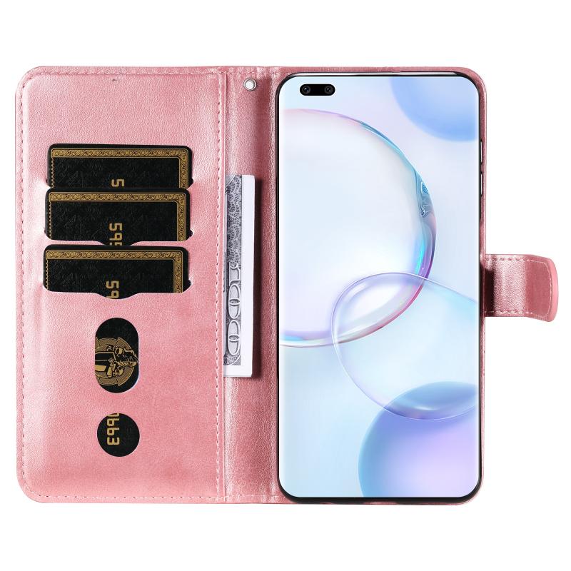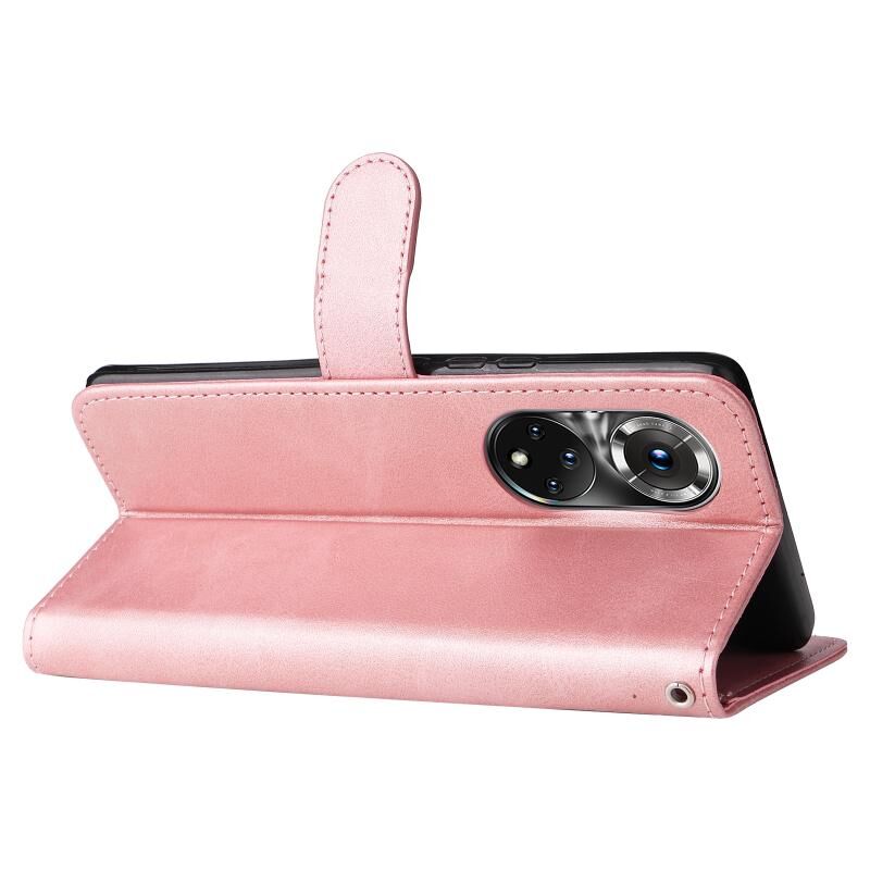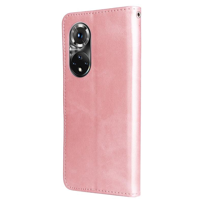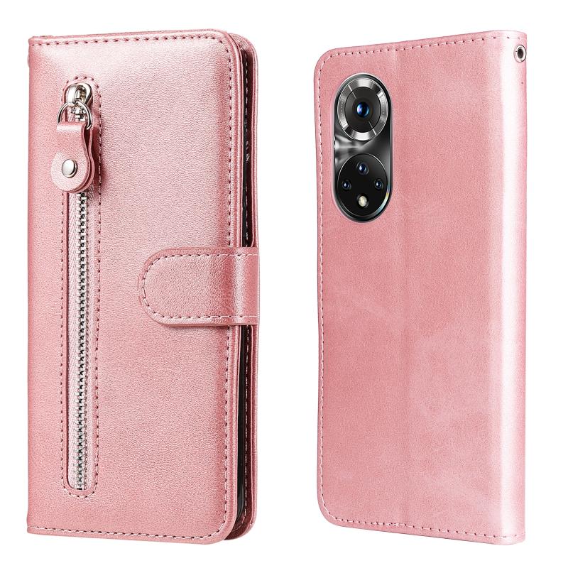 Θήκη δέρματος οριζόντιας αναδίπλωσης με φερμουάρ και υφή μοσχαριού για Huawei Nova 9 Pro/Honor 50 Pro (Ροζ χρυσός)