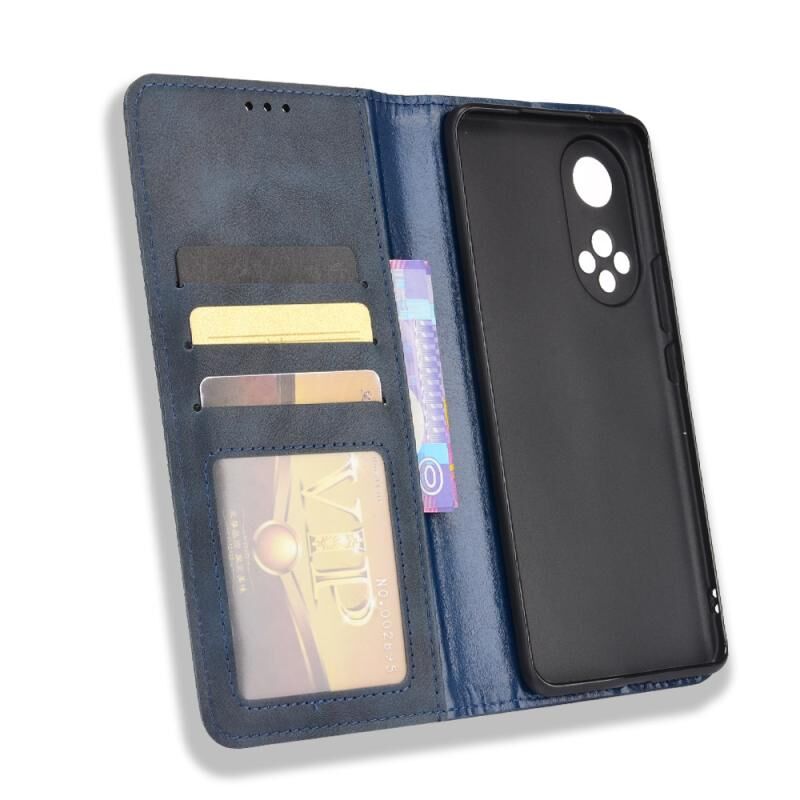 Για Huawei nova 9 Pro / Honor 50 Pro Μαγνητική πόρπη Retro Crazy Horse Υφή Οριζόντια Flip τηλέφωνο δερμάτινη θήκη με υποδοχή & υποδοχές καρτών & πλαίσιο φωτογραφιών (μπλε)