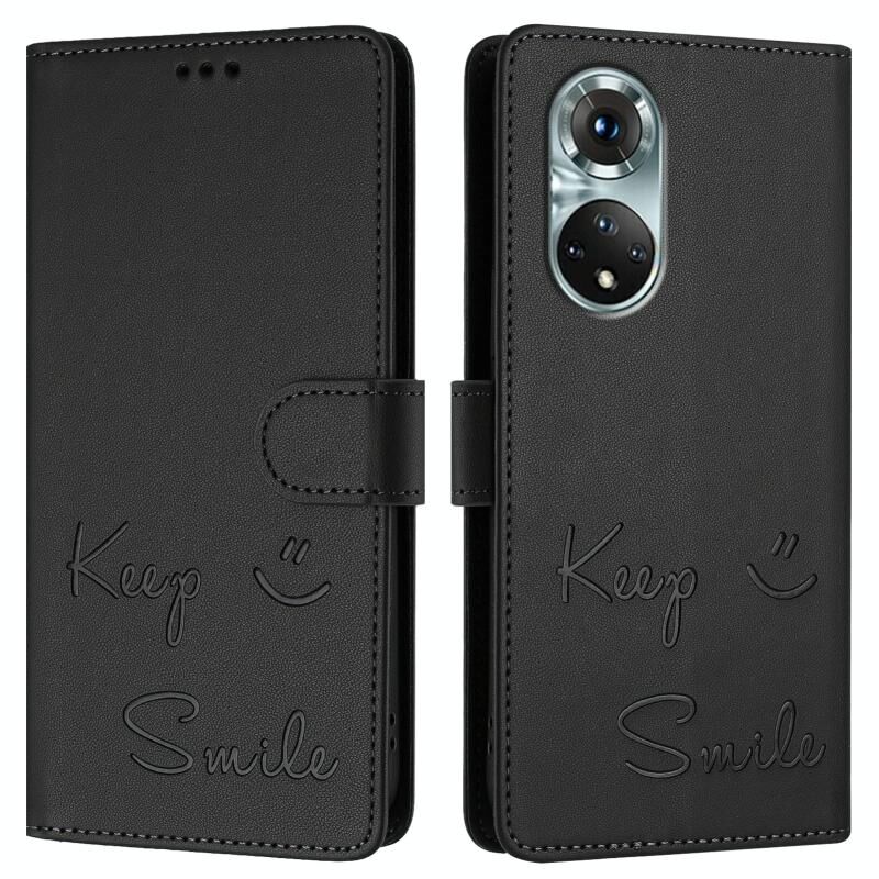 Για Huawei nova 9 Pro Χαμόγελο ανάγλυφο RFID δερμάτινη θήκη τηλεφώνου (Μαύρο)