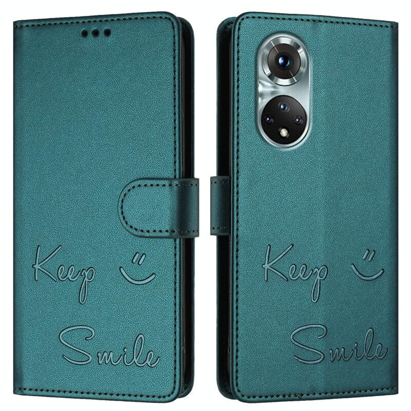 Για Huawei nova 9 Pro Χαμόγελο ανάγλυφο RFID δερμάτινη θήκη τηλεφώνου (Peacock Green)