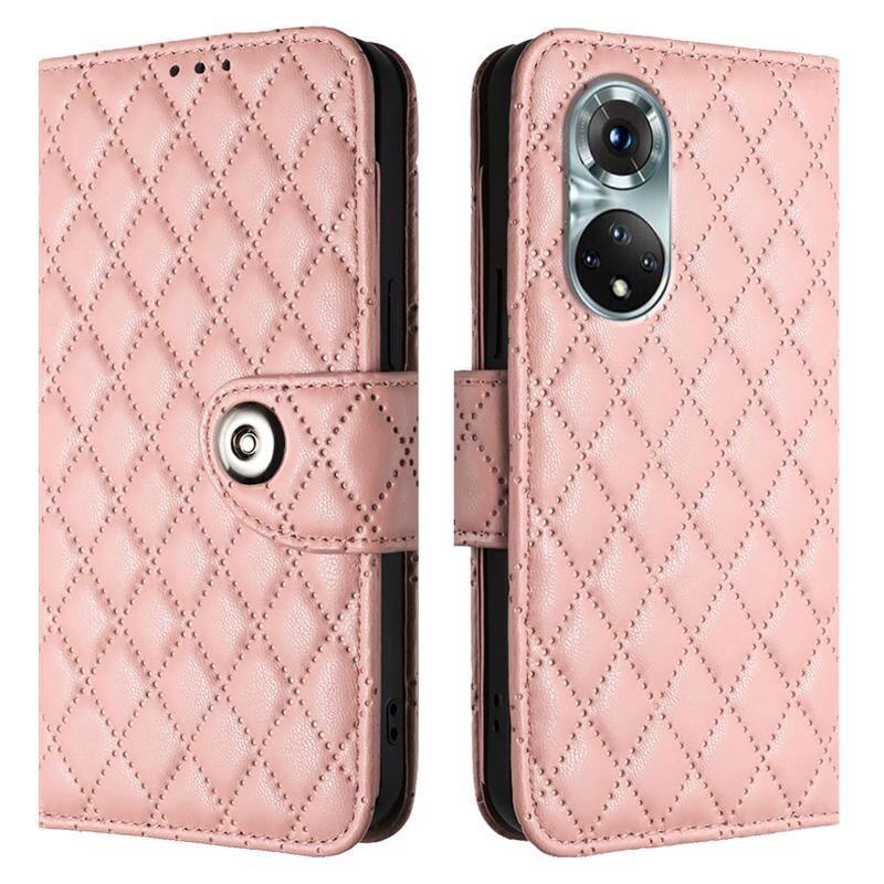 Για Huawei nova 9 Rhombic υφή Flip υπόθεση τηλεφώνου δέρμα με κορδόνι (Coral Pink)