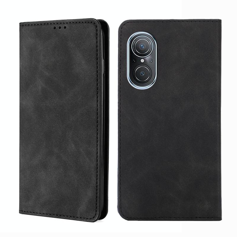 Θήκη τηλεφώνου Huawei Nova 9 SE 4G, δερμάτινη, οριζόντια, με μαγνητικό κλείσιμο και αίσθηση δέρματος (Μαύρο)