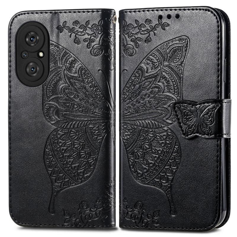 Θήκη Huawei Nova 9 SE Butterfly Love Flower ανάγλυφη οριζόντια δερμάτινη με βάση / υποδοχή κάρτας / πορτοφόλι / κορδόνι (Μαύρο)