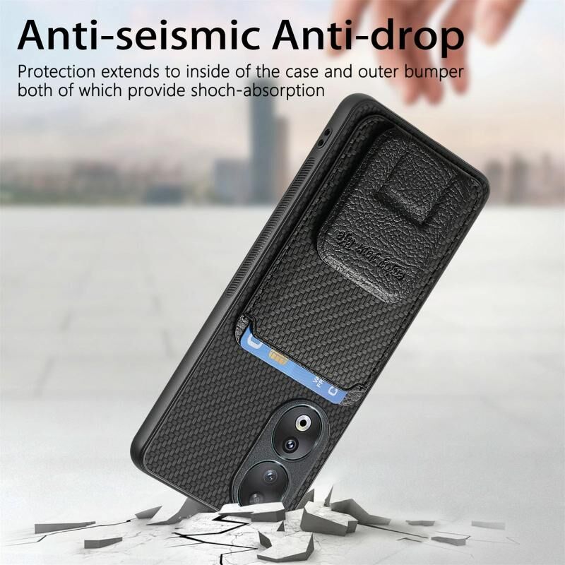 Θήκη τηλεφώνου για Huawei nova 9 SE από ανθρακονήματα με κάρτες και βάση στήριξης (Μαύρο)