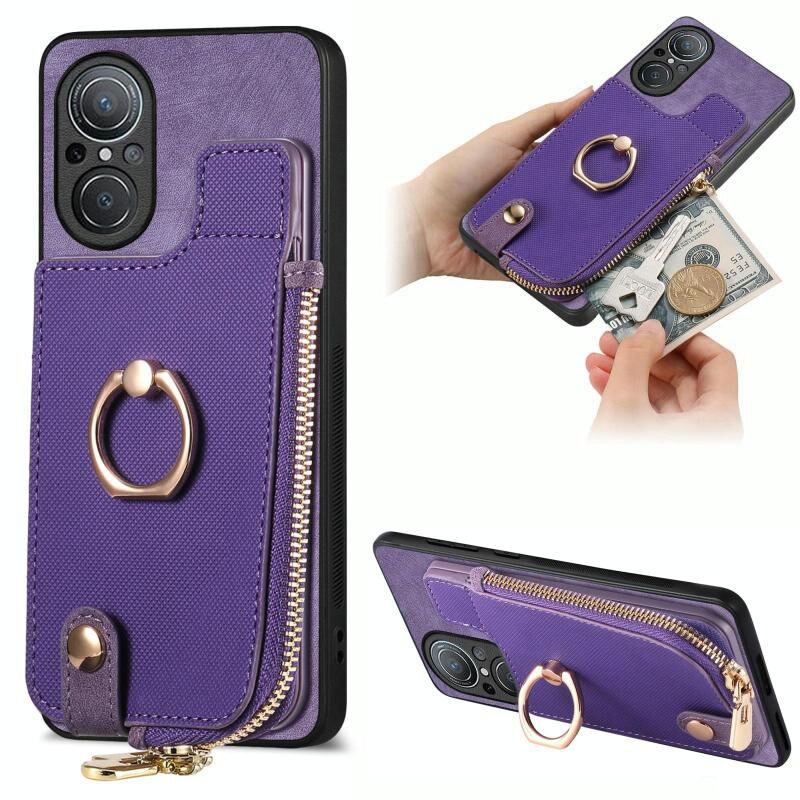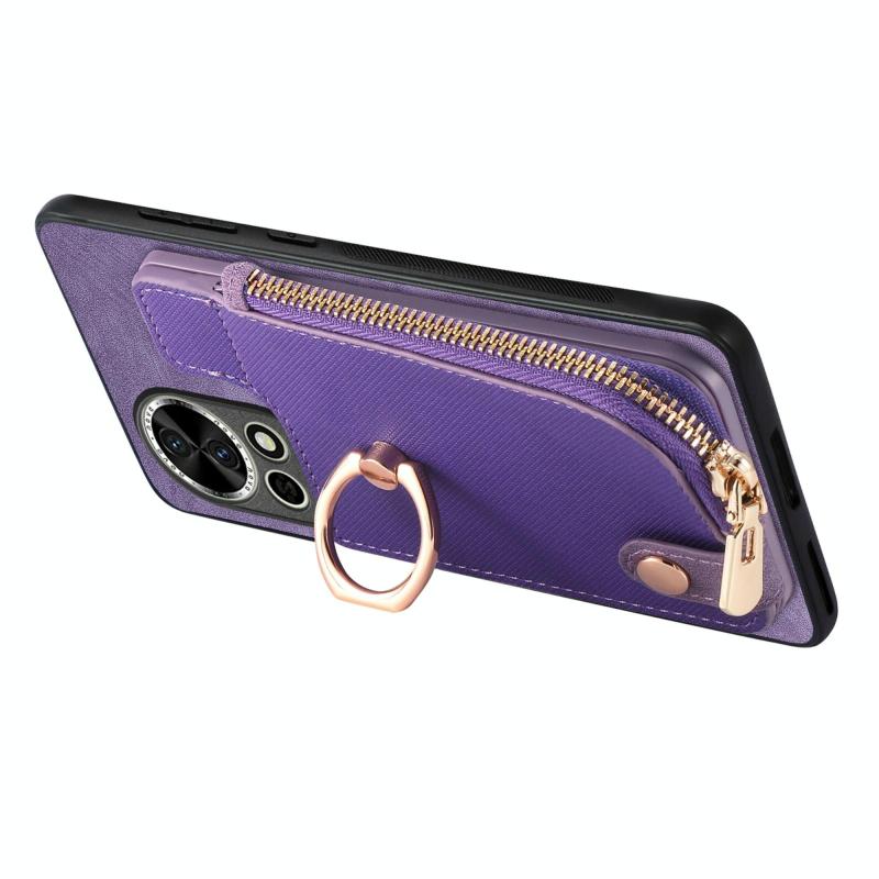 Θήκη Huawei nova 9 SE Δερμάτινη με Δαχτυλίδι & Φερμουάρ (Μωβ)