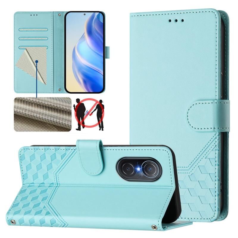 Για Huawei nova 9 SE / Honor 50 SE Honeycomb ανάγλυφο RFID δερμάτινη θήκη τηλεφώνου (πράσινο μέντα)