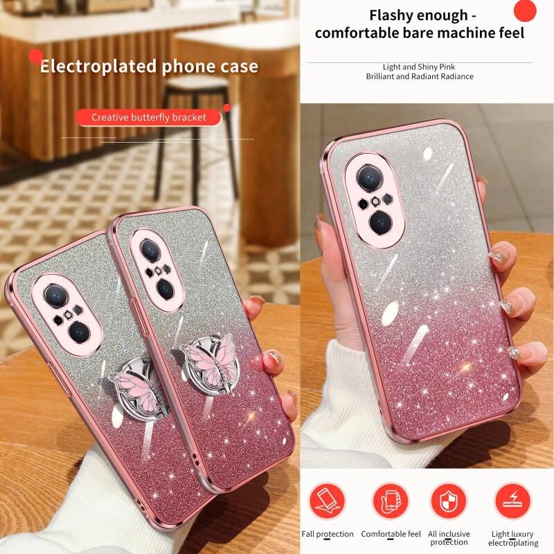 Θήκη τηλεφώνου Huawei nova 9 SE, TPU με σχέδιο πεταλούδας, γυαλιστερό, διαβαθμισμένο χρώμα (Μαύρο)