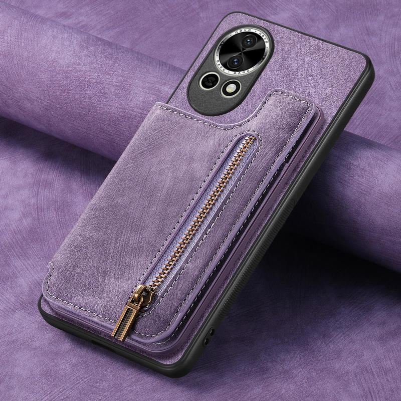 Θήκη κινητού τηλεφώνου Huawei nova 9 SE με δερμάτινο vintage πορτοφόλι με φερμουάρ (Μωβ)
