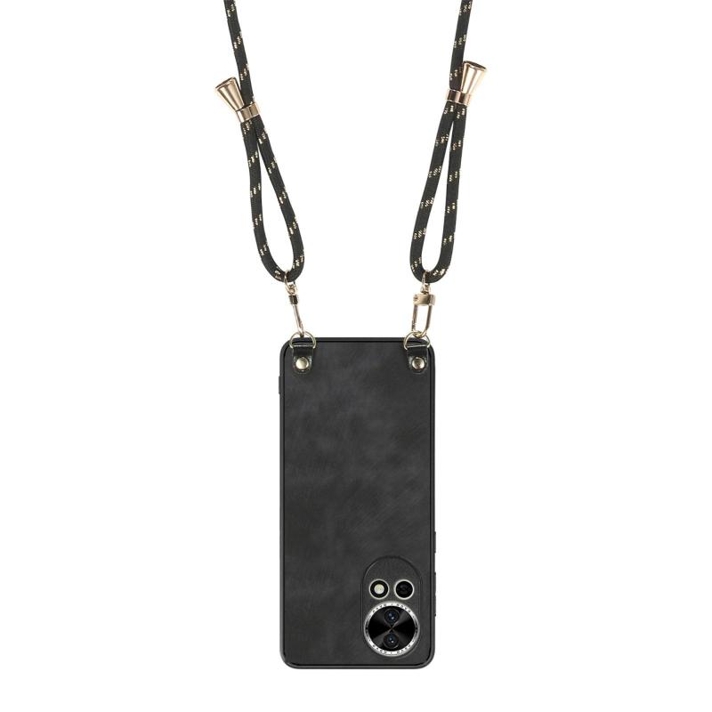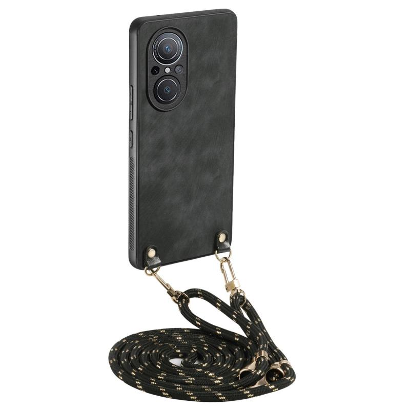Θήκη κινητού Huawei nova 9 SE από δέρμα vintage και PC με λουρί crossbody (Μπλε)