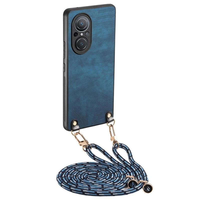 Θήκη κινητού Huawei nova 9 SE από δέρμα vintage και PC με λουρί crossbody (Μπλε)