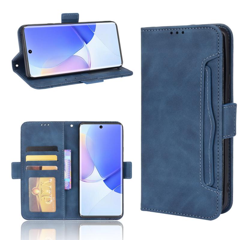 Θήκη τηλεφώνου Huawei nova 9 από δέρμα με οριζόντιο άνοιγμα, υφή μοσχαριού, με βάση στήριξης, θήκες για κάρτες & κορνίζα φωτογραφιών (Μπλε)