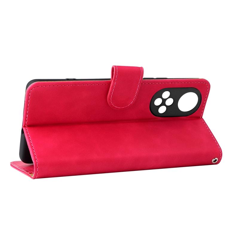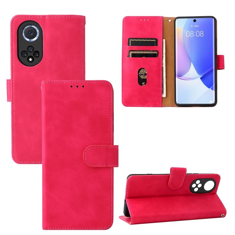 Θήκη κινητού τηλεφώνου Huawei nova 9 με μαγνητικό κούμπωμα και υφή δέρματος μοσχαριού (Ροζέ κόκκινο)
