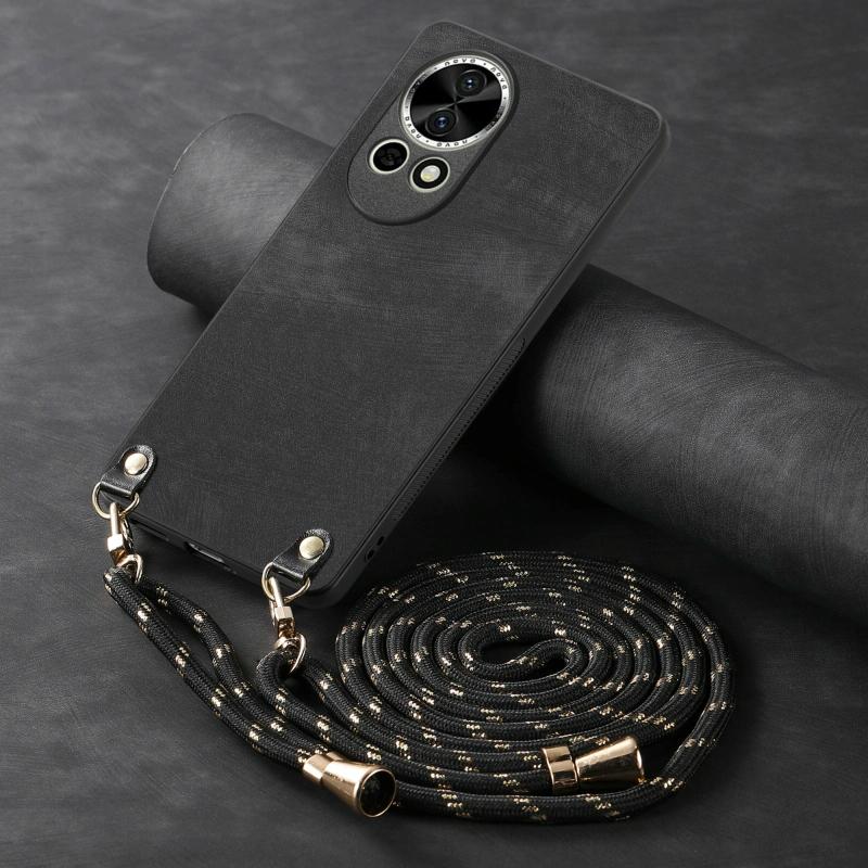 Θήκη κινητού Huawei nova 9 από δέρμα vintage και PC με λουρί crossbody (Μπλε)