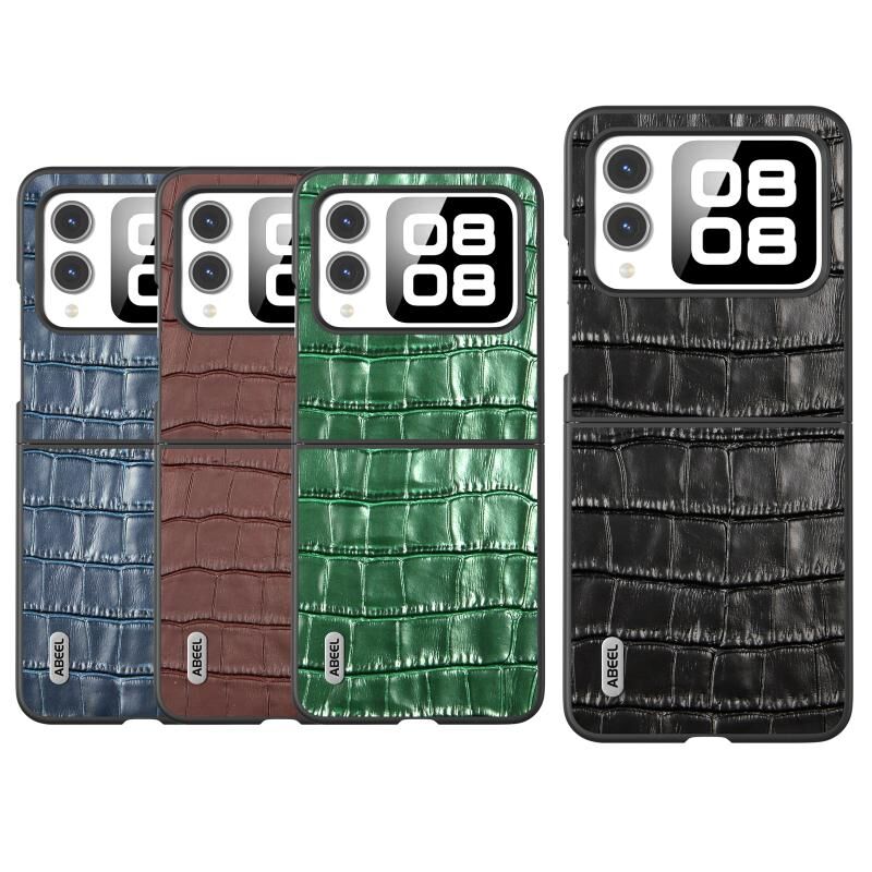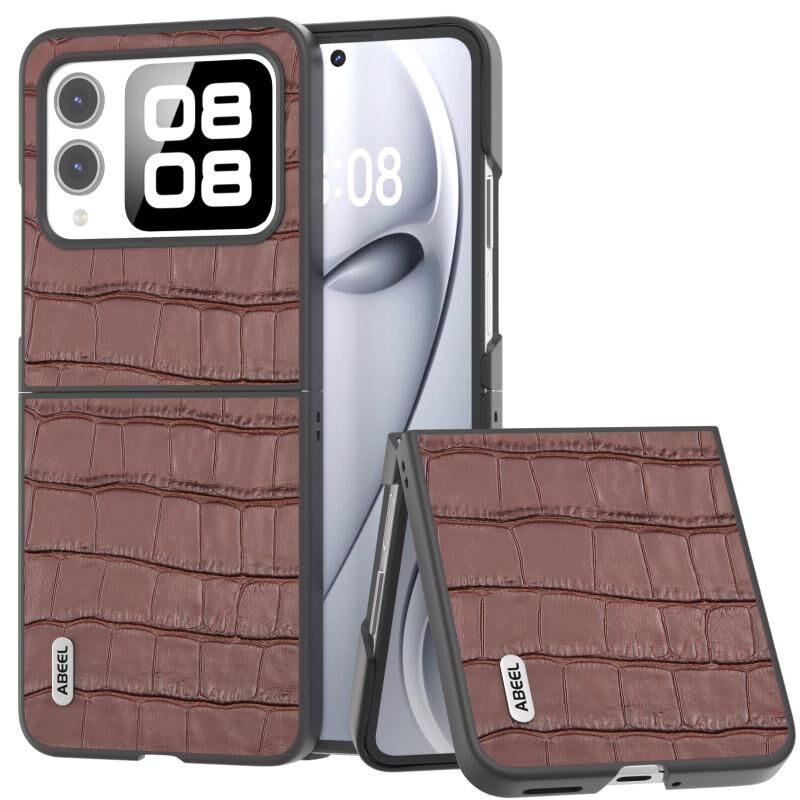 Θήκη τηλεφώνου από γνήσιο δέρμα με υφή κροκόδειλου για Huawei nova Flip ABEEL (Καφέ)