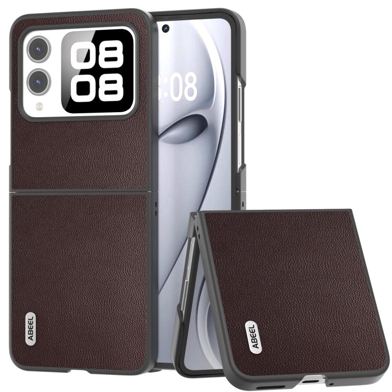 For Huawei nova Flip ABEEL Genuine Leather Elegant Black Edge Phone Case(Coffee)
