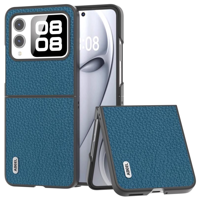 Θήκη τηλεφώνου από γνήσιο δέρμα Huawei nova Flip ABEEL με υφή λυτσί (Μπλε)