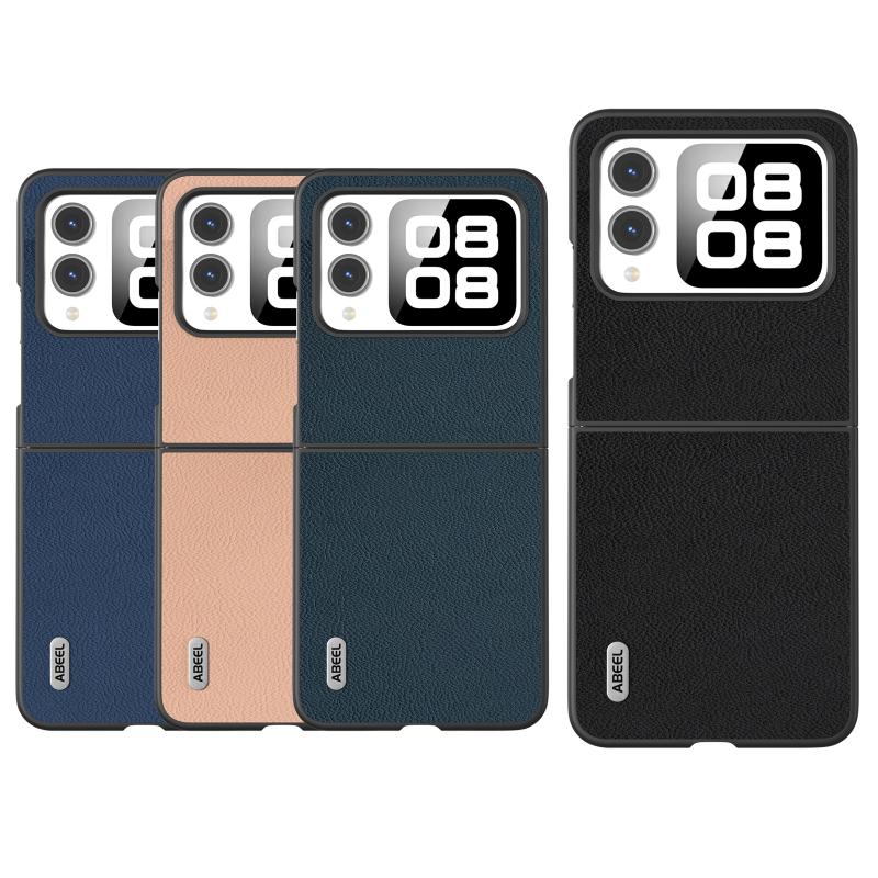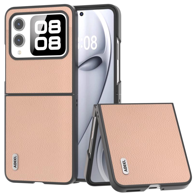 For Huawei nova Flip ABEEL Genuine Leather + PC Litchi Texture Phone Case(Pink Gold)