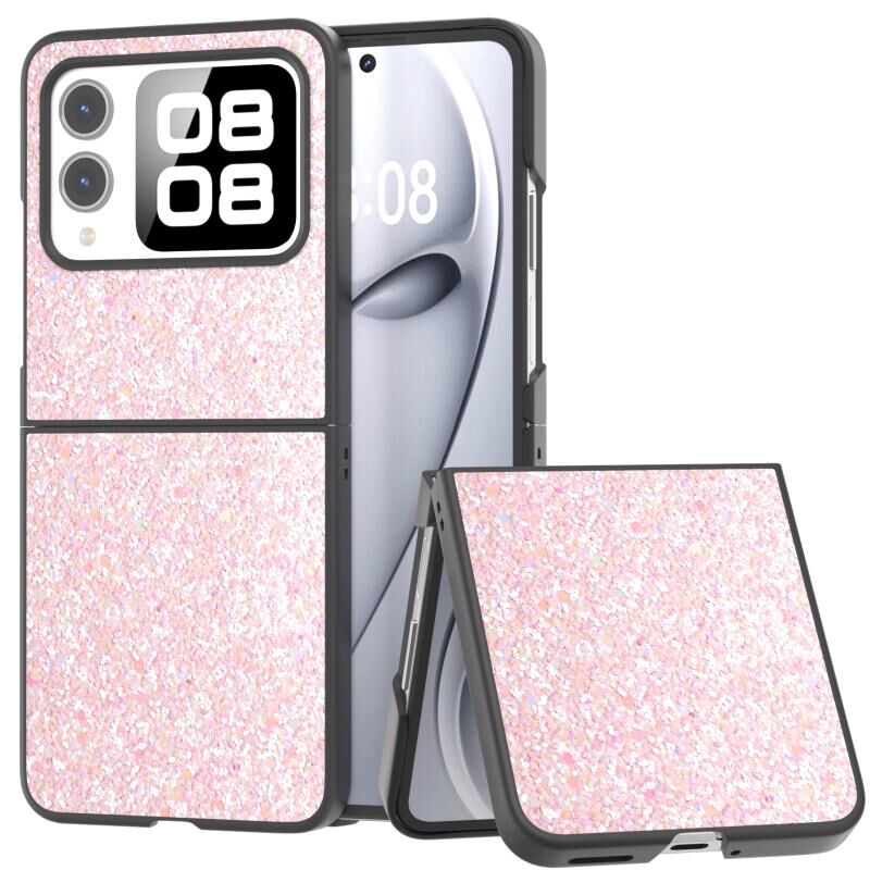 Για Huawei nova Flip μαύρο πλαίσιο πολύχρωμο Glitter τηλέφωνο υπόθεση (ροζ)