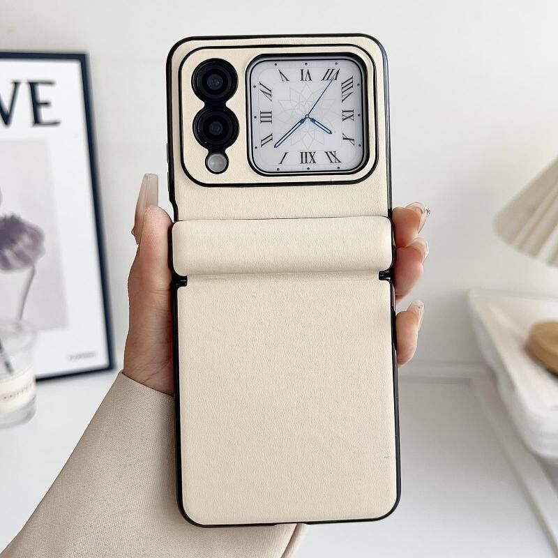Για Huawei nova Flip Ενσωματωμένο μαγνητικό άξονα Αμιγές χρώμα δερμάτινη υφή τηλέφωνο υπόθεση (μπεζ)
