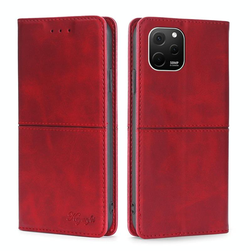 Θήκη τηλεφώνου Huawei nova Y61 με μαγνητικό δέρμα σε υφή αγελάδας (Σκούρο Καφέ)